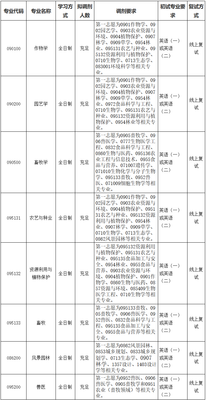 作物学等学科及学位点有调剂名额。欢迎各位考生报考。