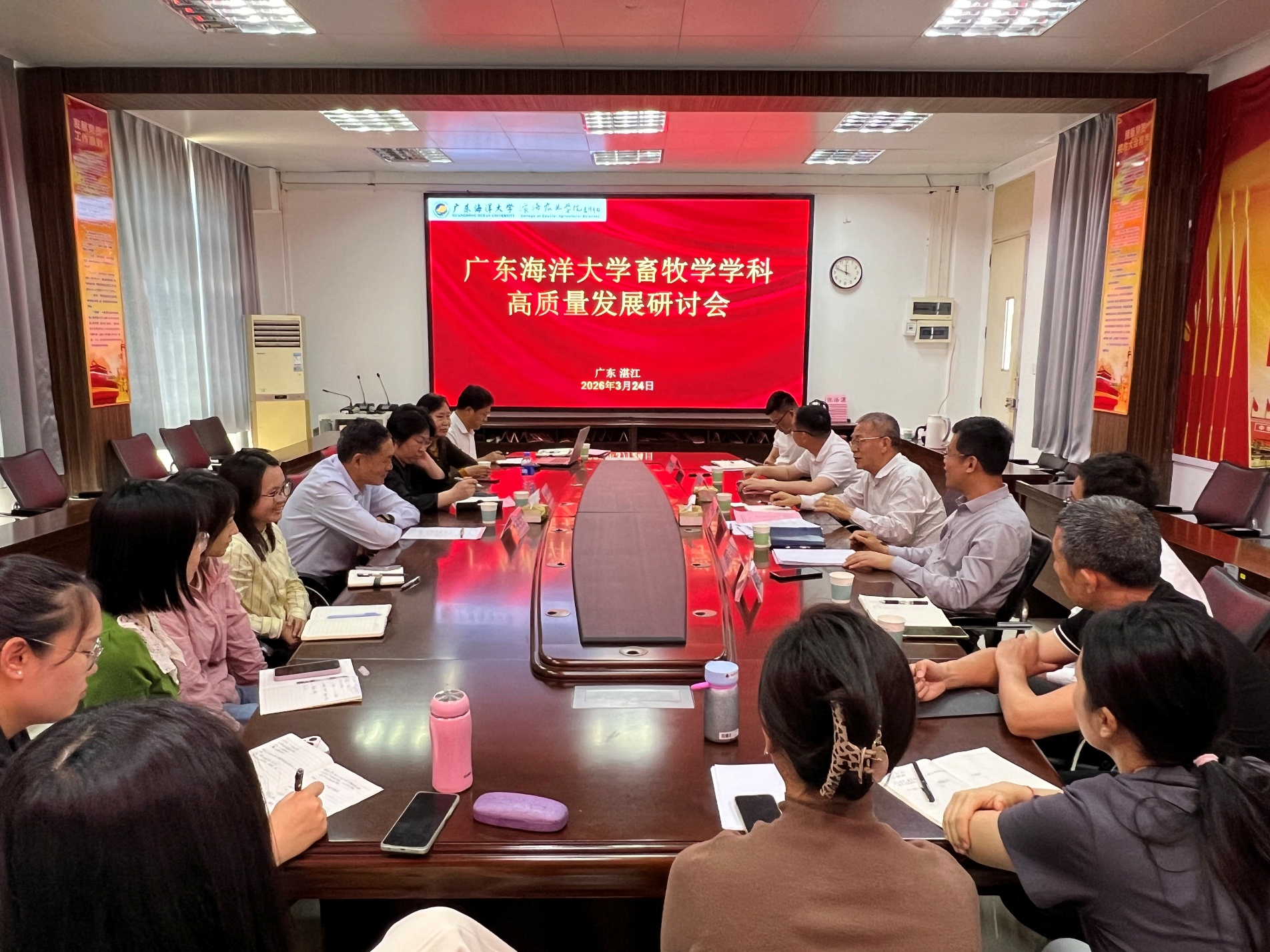 热带滨海生态畜牧业发展现状。两位校外专家就“热带滨海生态条件下畜牧学科如何聚焦地方产业、立足特色开展有组织科研,服务产业高质量发展”提出了针对性建议。随后,专家与学科教师还就“畜牧学博士点建设申报及地方高校青年人才成长路径”展开深入交流。