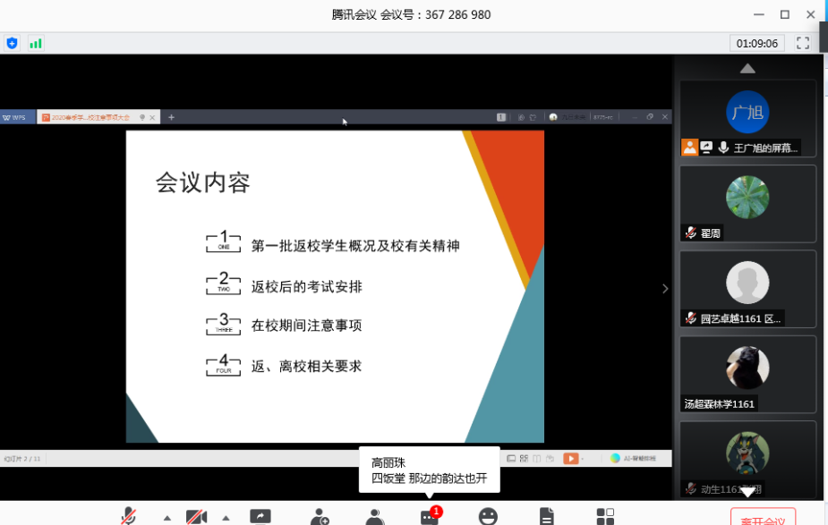 第一批返校学生传达了校、院两级关于学生返校的相关措施和管理方案。翟周老师结合返校学生的首要任务,从做好充分的考试准备、诚信应考等方面给出了具体建议和要求。高丽珠老师针对返校学生返校、考试和在校期间学习生活方面提出的具体问题,逐一解答。