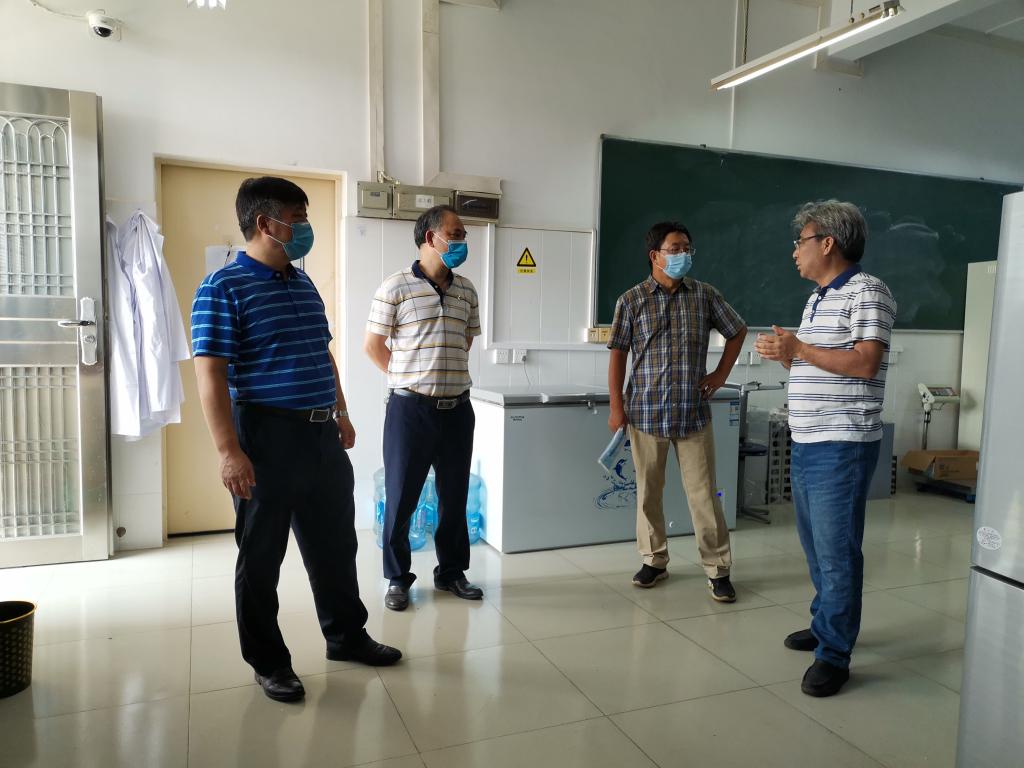 院长陈进军、书记邓伟强、副院长殷学贵等对兴农楼每间实验室和消防通道等进行全方位安全检查。从实验室内外卫生、防疫措施、消毒、仪器设备、试剂管理、消防通道等进行了仔细检查,发现问题并及时指出,要求相关责任人及时整改,确保实验室安全、高效运转,为返校急需做实验的本科生、研究生提供必要的实验场所支持。