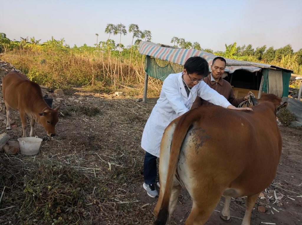 安排科技特派员马驿教授到南夏村为贫困户卢道权诊治病牛。经过三天的治疗,卢道权的病牛恢复正常,三个月后生了一头小牛。