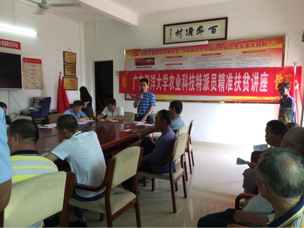 马驿教授作为省农村科技特派员,分别在湛江市麻章区太平镇六坑村、岭头村、陈渔村、南夏村等贫困村,扎实开展脱贫帮扶工作。他开展了走访调研,与驻村干部及村民座谈,组织村民进行技术培训,发放相关技术资料与鸡苗、消毒液等活动。