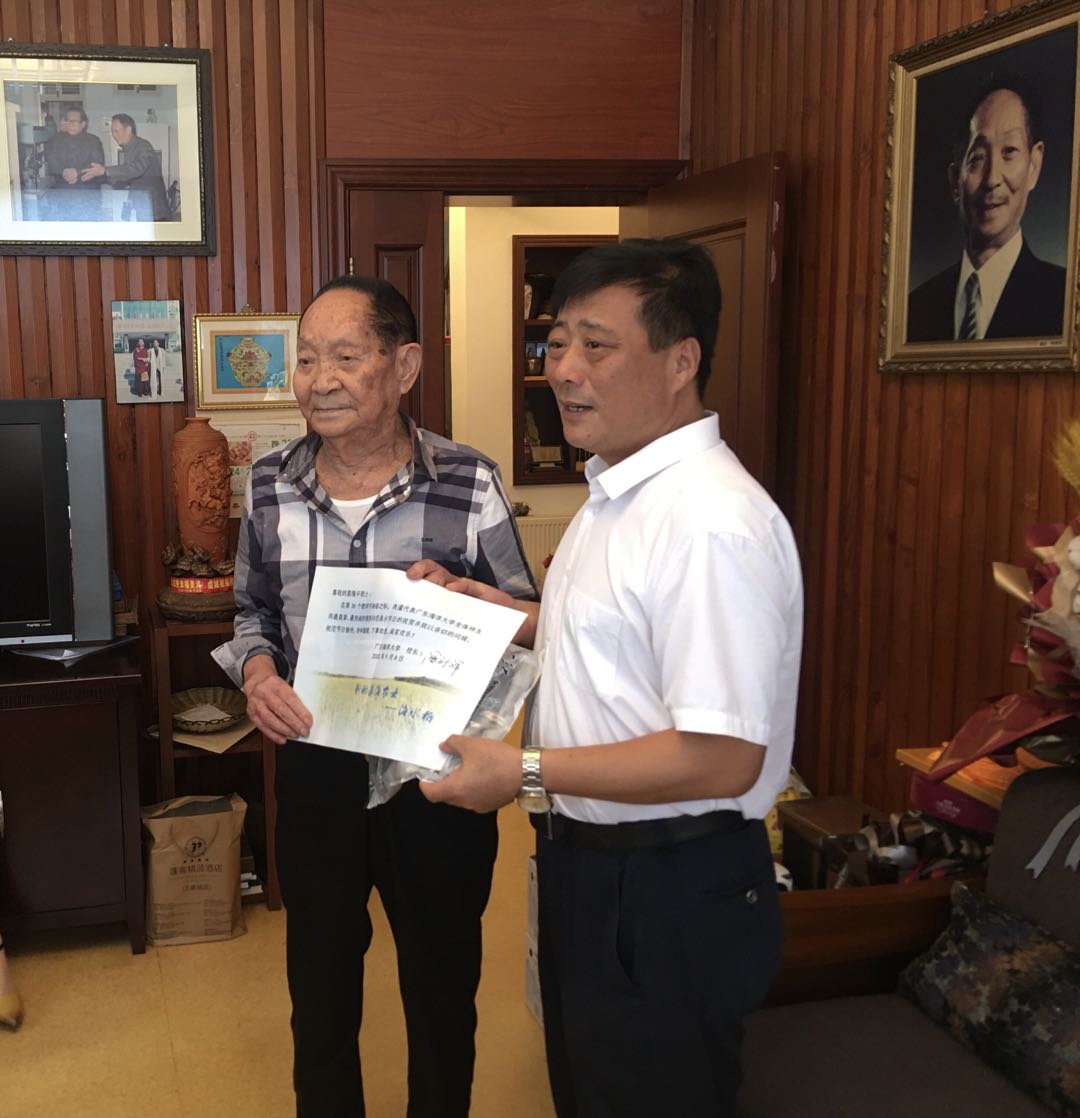 袁隆平院士在家中热情接待了教师代表一行,非常愉悦地接受了农院教师精心设计制作并由潘新祥校长亲笔签名的教师节贺卡,仔细阅鉴教师节贺词,意味深长地频频颔首。刚刚度过90岁生日的袁老师身体硬朗,精神矍铄,思路清晰,十分健谈。以他常说的“湛江是个好地方”为头,袁隆平说,国家支持大力发展海水稻,李克强总理说这是好事情。海水稻的源头在湛江,海水稻国创中心要建设好。当听到海水稻国创中心华南中心受到广东省、湛江市和888集团