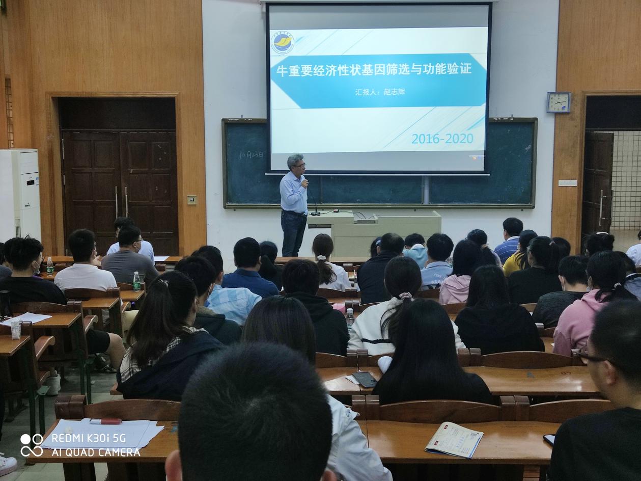 畜牧学科带头人赵志辉教授作主题报告,另有江东能、郑哲、周光现、张权、邓君明、葛叶、刘晓曦、王伟等8位老师做了报告。9位老师结合自己的研究方向和研究成果,和广大青年教师和研究生分享了相关学科的新理念、新进展和新成果。报告主题包括基因组学与分子选育、物种形成与分化机制、重要动物病原微生物遗传进化、分子药物设计开发、营养素的分子水平调控等,老师们准备充分,内容丰富,信息量大,讲解精彩,会场气氛活跃。