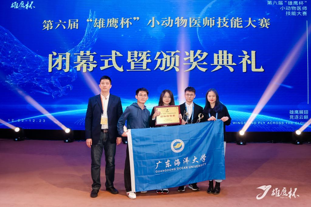 派出以动物医学系主任巨向红教授为领队,姚秋成博士为指导老师,陈丽嘉、章朝坤、吴雨书和黎炳坤为选手的参赛队伍,经过两天的激烈角逐,取得了 “大学生组”团体特等奖、“大学生组”优秀辅导老师特等奖及个人“中国兽医新星奖”的好成绩。