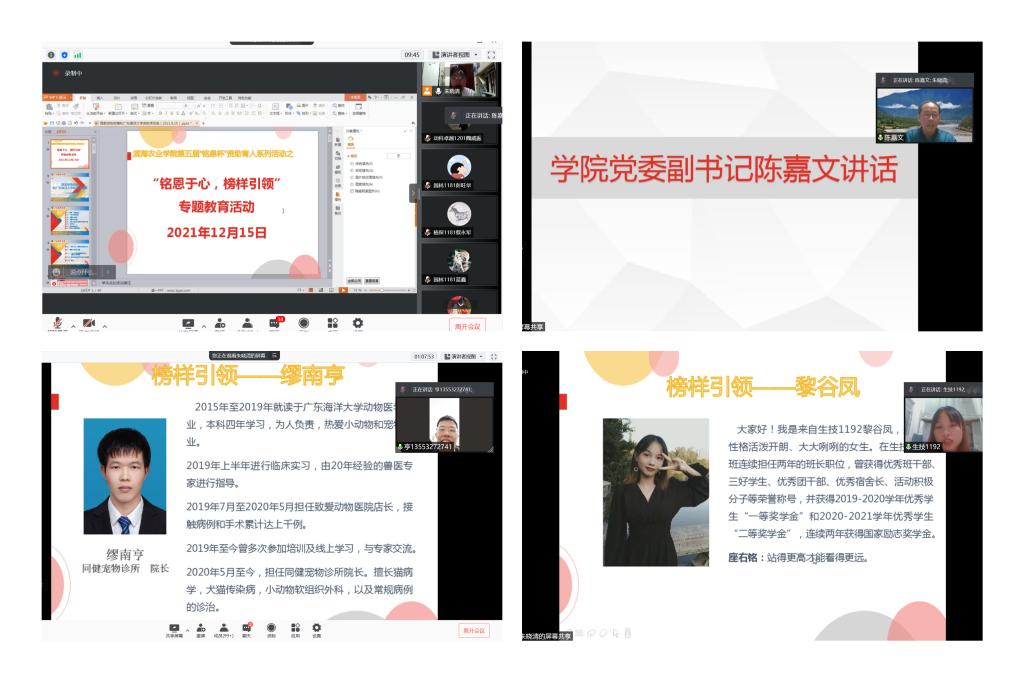 自立自强典型人物生技1192黎谷凤同学和2019届毕业校友缪南亨介绍了自己奋进的心路历程,激励受资助同学积极进取、努力学习,实现自己的人生理想。随后陈嘉文从自身成长经历告诉同学们只有国家的强大才有个人更好地发展,他也希望受资助同学能从多元资助体系中成长成才,把自己的个人理想和国家前途命运结合在一起,学好专业知识为乡村振兴战略贡献自己的一份力量。最后888集团