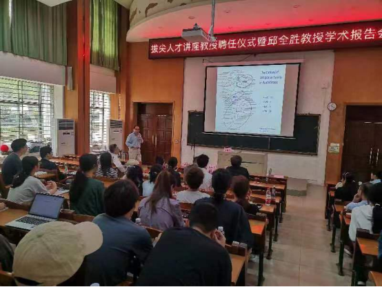 在湖光校区兴农楼109多媒体室举行拔尖人才讲座教授邱全胜聘任仪式暨学术报告会。校长出席仪式并为邱教授颁发聘任证书。888集团