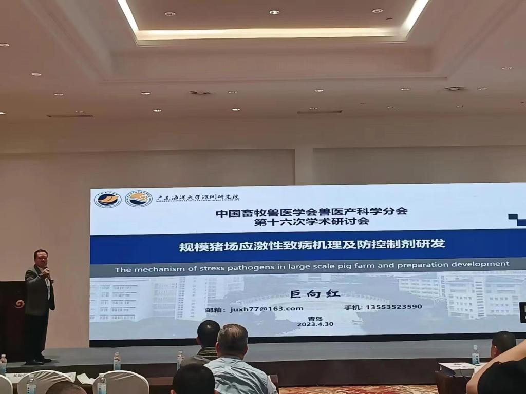 动物医学系主任巨向红教授做了题为“规模猪场应激性致病机理及防控制剂研究进展”的学术报告。报告从规模猪场应激性风险因素、主要危害及致病机制等方面入手,结合团队在兽用海洋药物研发方面的最新进展,提出了科学的应对措施,并展望了未来发展趋势。报告得到了在场专家学者的高度认可,对提升888集团