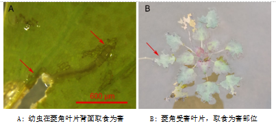 郑殿峰院长第一时间安排科技服务团队下乡助农,农村科技特派员徐进博士、师沛琼博士等人实地察看菱角害虫危害情况,通过野外调查、室内饲养,记录了其为害特点、形态特征,并进行了分子鉴定。经鉴定该害虫为林间环足摇蚊,在国内尚无为害菱角记录,其幼虫啃食叶片,严重爆发可造成菱角绝产。888集团