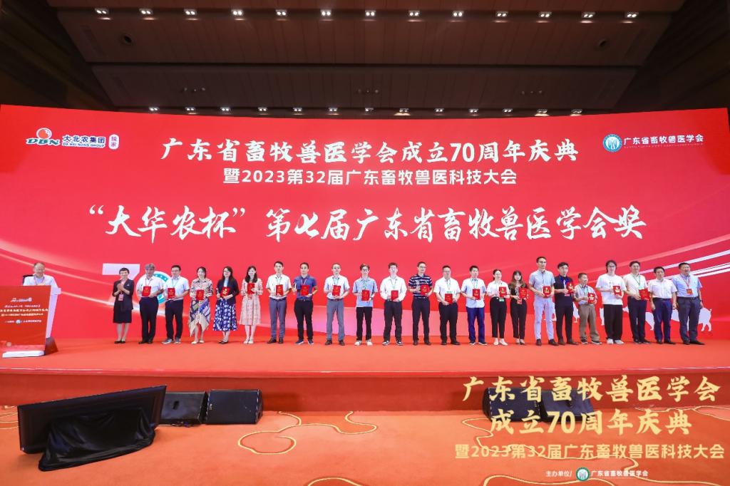 畜牧学科带头人赵志辉教授荣获“大华农杯”第七届广东省畜牧兽医学会“杰出科技工作者”称号,动物医学系主任巨向红教授荣获广东省畜牧兽医学会成立70周年“青年科技奖”。