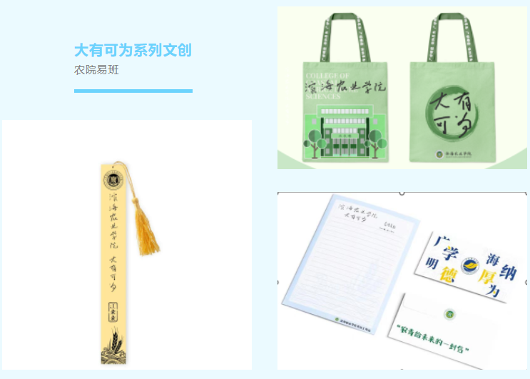 特色为元素,结合校训等内容,由农院易班自主设计。既有实用且美观的书签与帆布袋,也有汇集了大学学习和生活攻略的“农青给未来的一封信”。通过精心准备的大礼包,农院向新一届农院青年表达最诚挚的欢迎!希望2023级新生们都能在农院向你敞开的光华灿烂中行而不辍,笃行致远,常怀打开书院礼包时对未知的渴望和对生活的热爱。