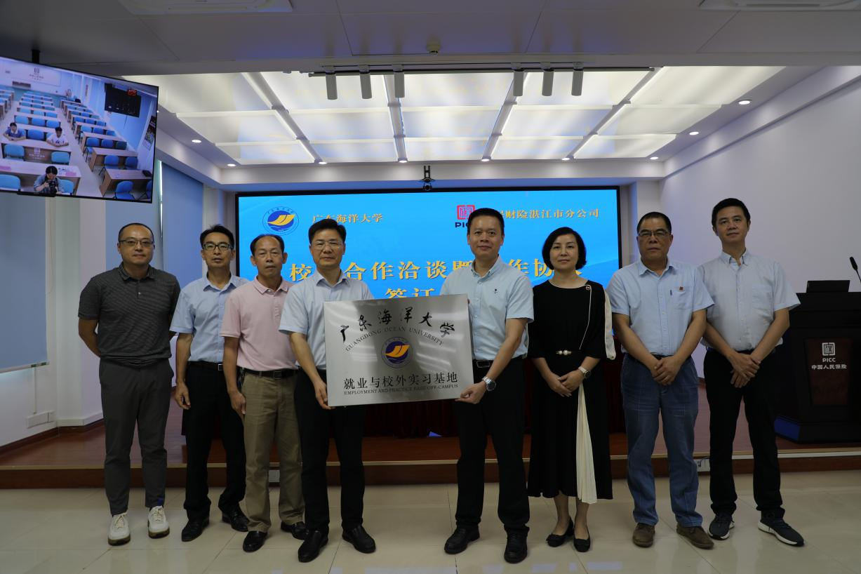 党委副书记陈嘉文、辅导员翟周、王广旭一行4人到中国人民财产保险股份有限公司湛江市分公司开展校企合作洽谈,签订了校外实践教学基地建设协议和毕业生就业基地协议,并举行了授牌仪式。