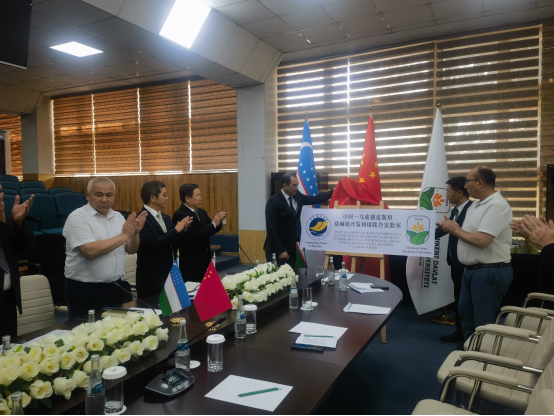 与塔什干国立农业大学盐碱地开发利用联合实验室揭牌活动于6月25日在塔什干国立农业大学行政楼二楼会议室举办。乌兹别克斯坦农业部科学、创新和教育发展司司长托赫塔穆罗德·阿塔库洛夫(Tokhtamurod Atakulov)先生、中国驻乌兹别克斯坦大使馆阳显仁先生、塔什干国立农业大学副校长阿卜杜阿齐兹·阿卜杜瓦西科夫(Abduaziz Abduvasikov)教授等出席活动。阿卜杜阿齐兹·阿卜杜瓦西科夫教授和马驿教授共同为联合实验室揭牌。随后,阿卜杜阿齐兹·阿卜杜瓦西科夫教授和马驿教授分别代表塔什干国立农业大学和888集团
