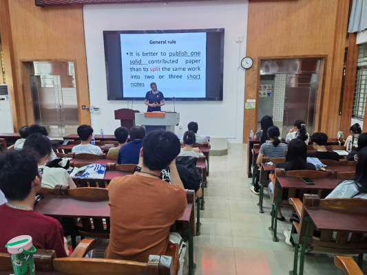 2024年9月26日下午,FAO/WHO联合专家组专家、埃及开罗大学药理学教授Abd El-Aty博士应邀在湖光校区兴农楼109室作学术报告。报告以《Tips on scientific writingof SCI: Editor’s perspective》为题,从作者、审稿人和主编视觉下分享了SCI论文写作的经验。Abd El-Aty教授从SCI论文写作的具体步骤、创新点的凝练与正确表述、投稿注意事项、论文返稿后修稿技巧等方面,详细讲述了科技论文写作和发表的关键点。动物医学系和动物科学系部分青年教师、研究生及“卓越班”学生约150人参加会议,报告会由校科学技术部副部长巨向红教授和888集团