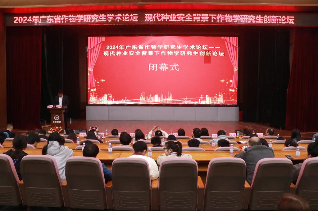 闭幕式由副院长沈雪峰主持。作物学科带头人郑殿峰教授在闭幕式致辞中表示,展望未来,我们必须清醒地意识到,现代种业安全的征程任重道远,挑战与机遇并存。衷心期望同学们能以此次论坛为基石,将在此收获的知识、感悟与启迪融入后续的科研,秉持严谨笃实的态度,发扬勇于创新的精神,为攻克现代种业安全的难题不懈奋进,广东省乃至我国的种业振兴贡献磅礴力量。