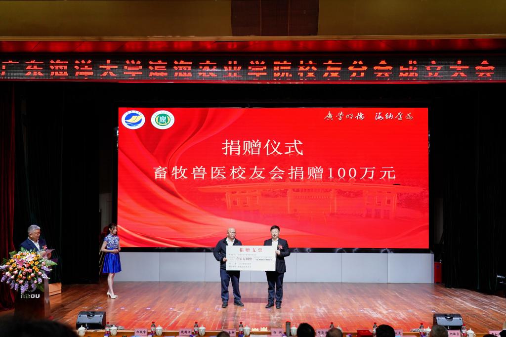 接受捐赠并颁发捐赠证书。畜牧兽医校友会捐赠100万元;曾敏、潘丽媚校友捐赠90万元;世纪云天(海南)投资集团有限公司捐赠20万元;江西新瑞丰生化股份有限公司捐赠20万元,合计总捐款达230万元。