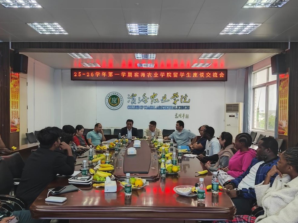 在兴农楼419召开国际留学生座谈交流会。国际交流合作部部长陈进军教授、888集团