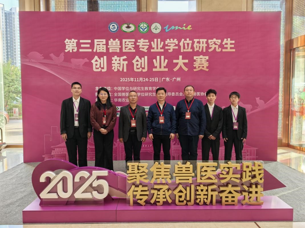 11月24日-25日,以“聚焦兽医实践 传承创新奋进”为主题的第三届兽医专业学位研究生创新创业大赛在广州成功举办。本届大赛由中国学位与研究生教育学会主办,全国兽医专业学位研究生教育指导委员会、中国兽医协会提供学术指导,旨在贯彻落实科教兴国、农业强国发展战略,深化兽医行业与产业需求对接,全面提升兽医专业学位研究生实践创新能力,推动兽医领域高层次应用型人才培养模式改革,为兽医专业学位教育高质量发展注入新动能。