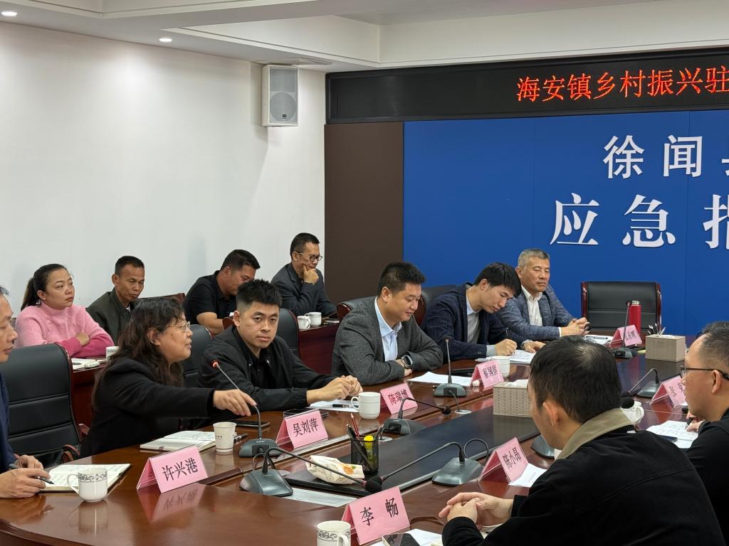 省级农村科技特派员团队吴刘萍教授率团队成员梁子鑫博士、吴家权博士、谢金雄助理一行四人赴湛江市徐闻县,参加海安镇乡村振兴驻镇帮镇扶村工作队交接会。海安镇镇委书记蔡国屏、驻镇帮扶单位代表湛江税务局副局长张荣等共同出席。