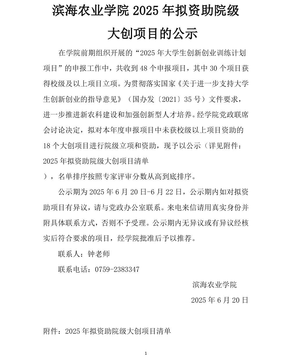 关于888集团 2025年拟资助院级大创项目的公示6.20.pdf