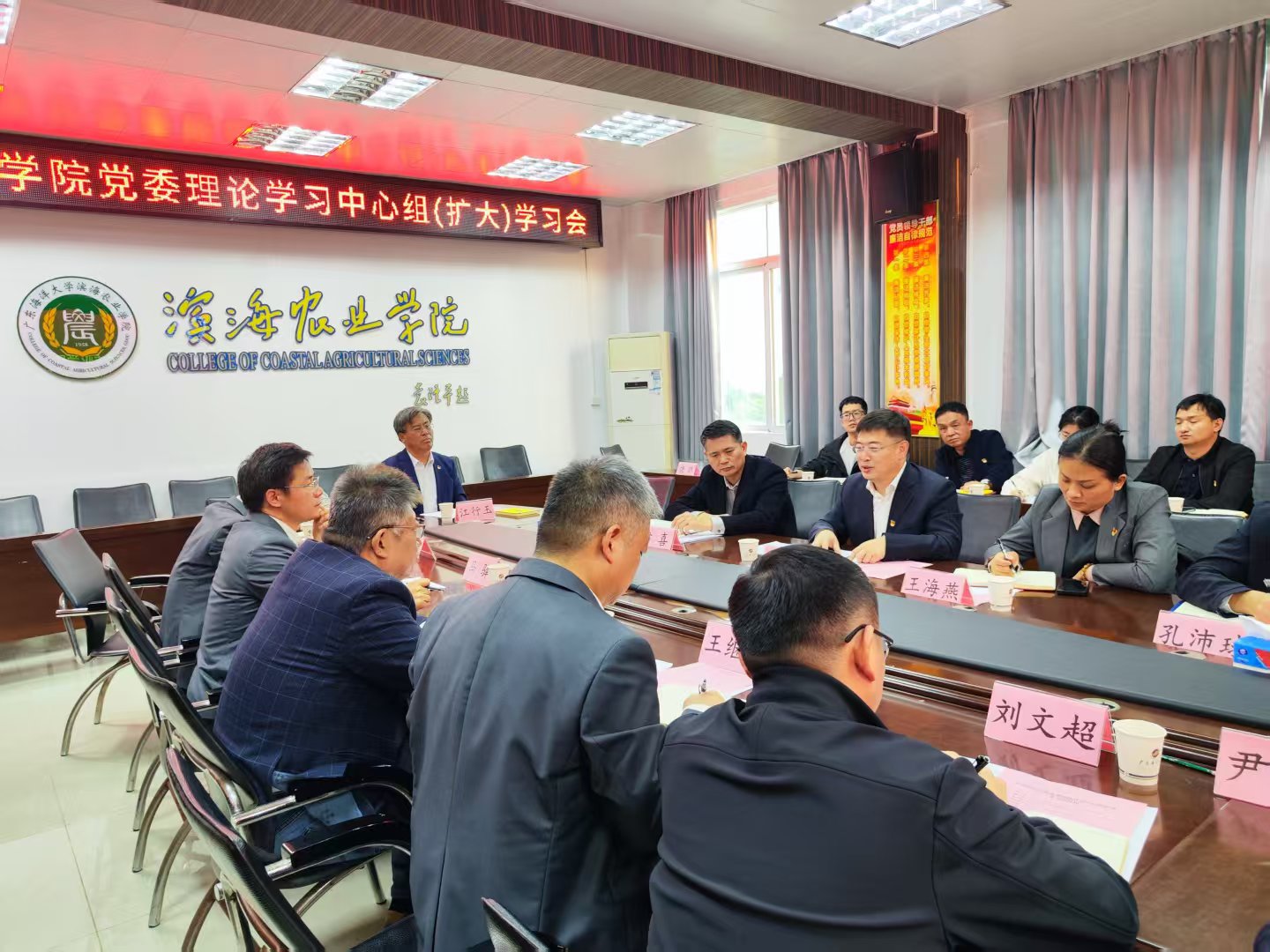 1216日下午,888集团 在湖光校区兴农楼419会议室召开党委理论学习中心组(扩大)学习会。校党委书记杨洲到会巡听指导,校党政办公室主任尹喜陪同,水产888集团 党委书记王海燕、副书记孔沛球受邀旁听。888集团 党委委员全体出席,纪委委员、各党支部书记等列席会议,学习会由888集团 党委书记郑殿峰主持。