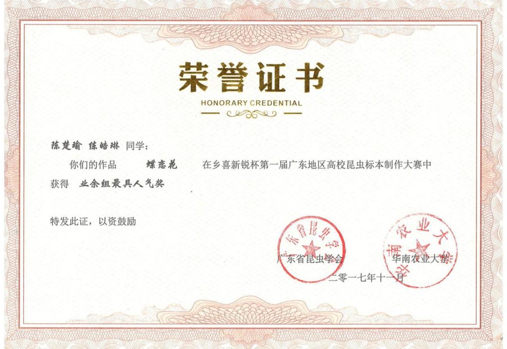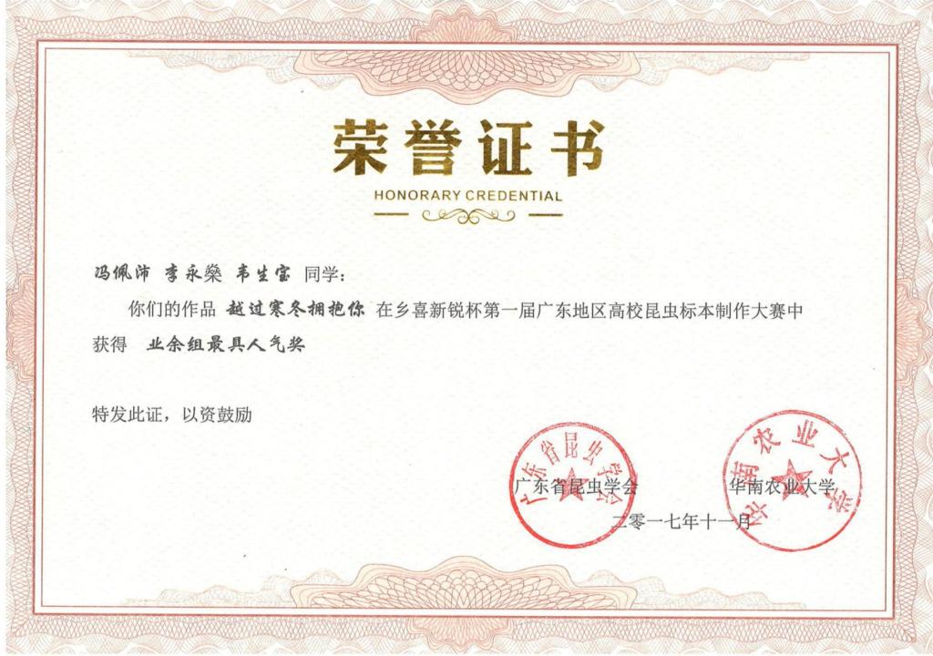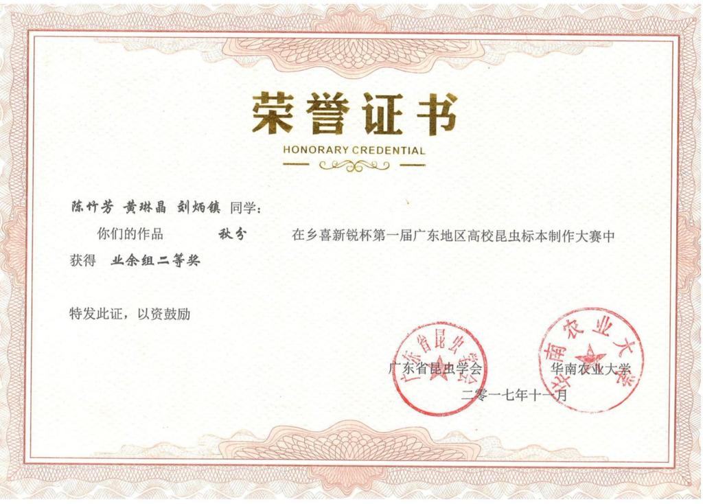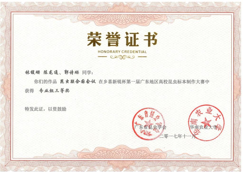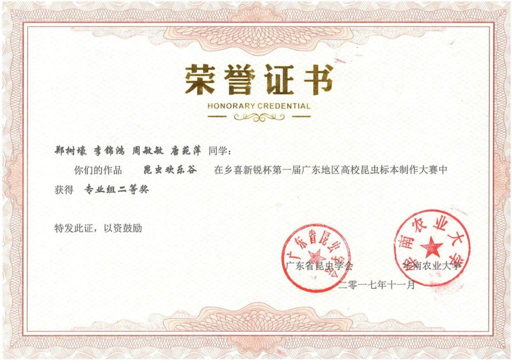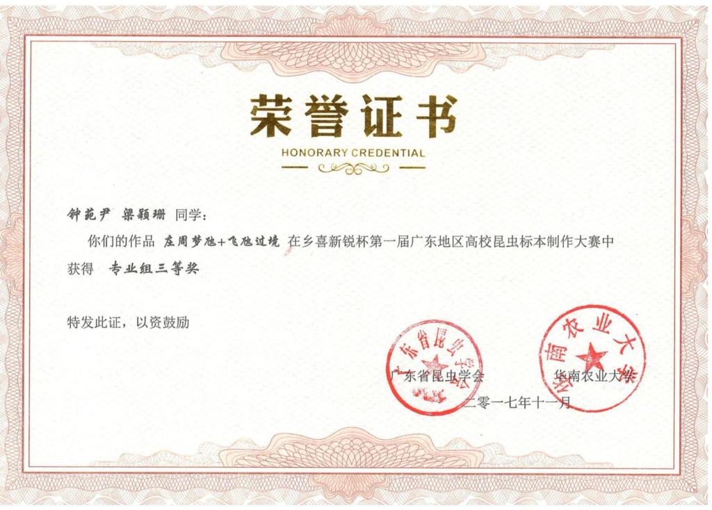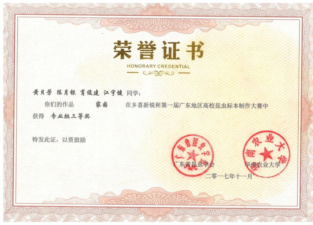 第一届“乡喜新锐杯”广东地区昆虫标本制作大赛活动剪影及获奖证书